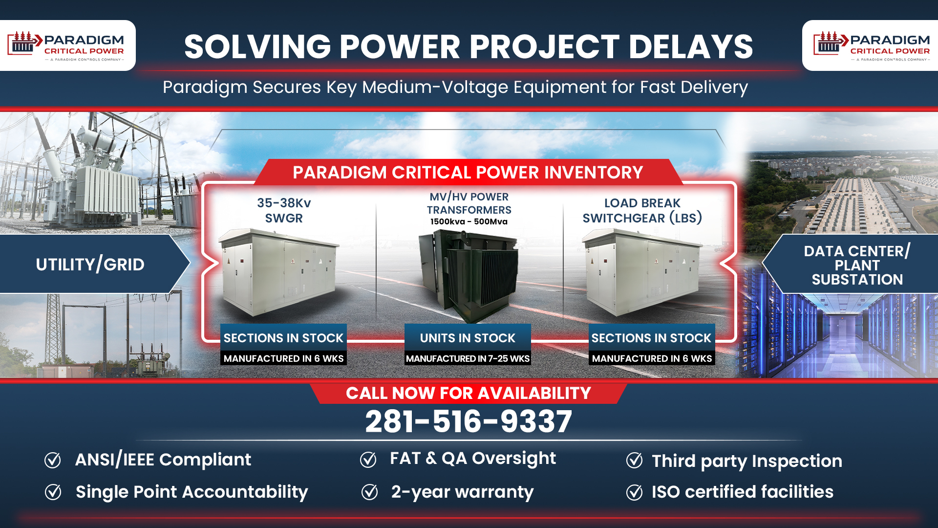 When lead times exceed 100 weeks and timelines slip, Paradigm Critical Power delivers MV switchgear and transformers on your schedule. We restore control when the supply chain fails.